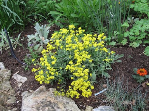 The basket of gold is a member of the allusum flower family and these low growing flowers. Act as kinda a ground cover with 100s of smaller yellow blooms
