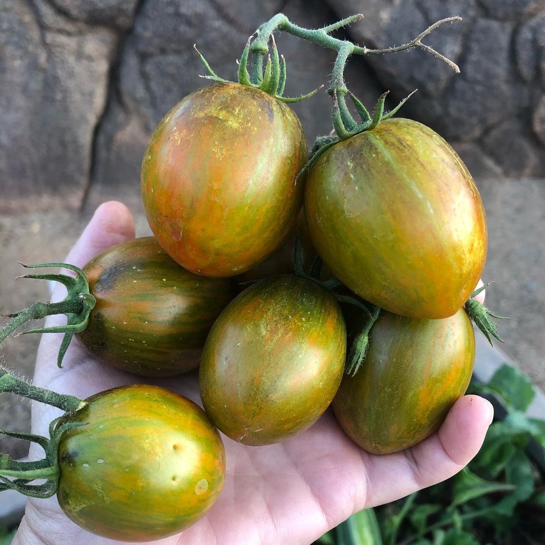 What a variety this multi color little tomato is truly a work of art. Having 3 to 7 colors in it. And changes as it ripens. These are a head turner at any market or farm stand will take about 75 to 80 days to start picking
