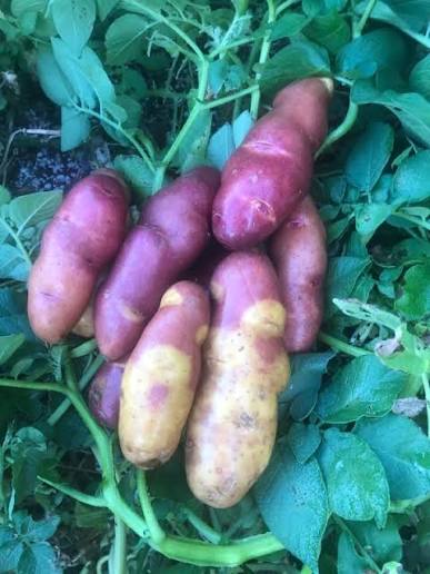 Magic Myrna potatoes are otherwise known as Alaskan Fingerling potatoes, named by their breeder Bill Cambell their name honours Bill's wife Myrna