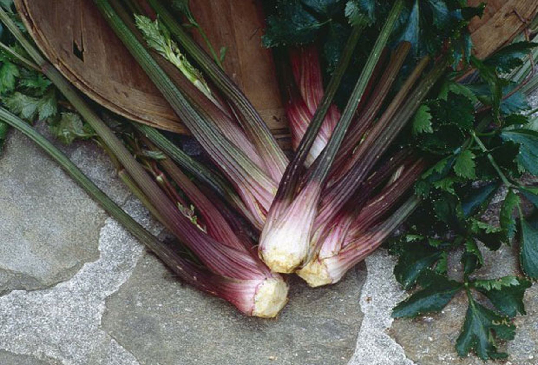 Pink plume celery is a stunning variety of celery with small stems of blush to burgundy.