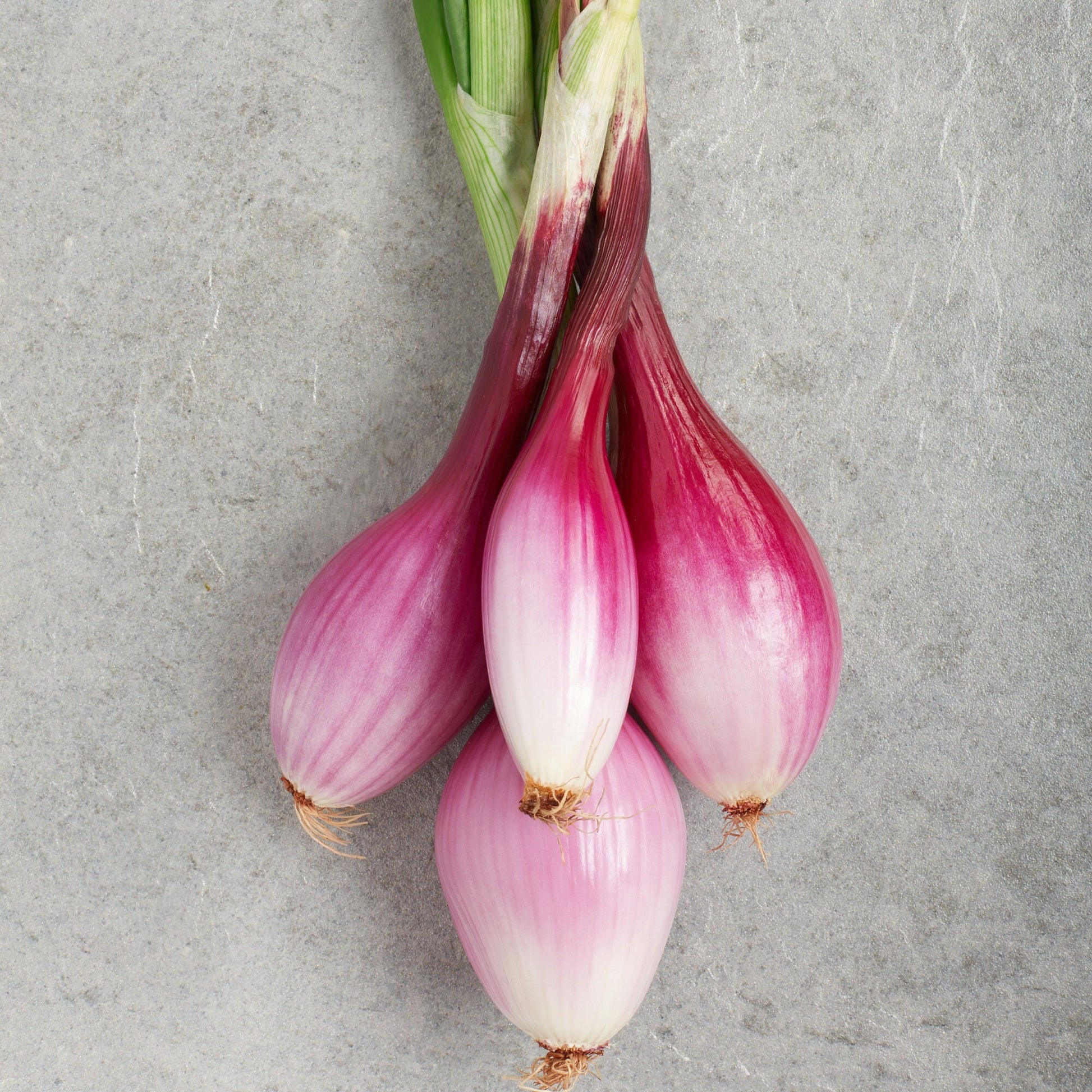 French red shallots the gentleman's onion meaning they are more mild than onions but have wonderful flavor they grow like garlic they form bulbs. With cloves just put the cloves in the ground in the fall or early spring and presto you will have full growen shallots.